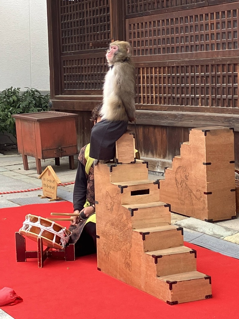 マラソンの後、僕は大阪の事務所に戻る際に、ちょっと大阪天満宮に梅を見に立ち寄ったんです。すると、猿回しがちょうど始まるところでした。