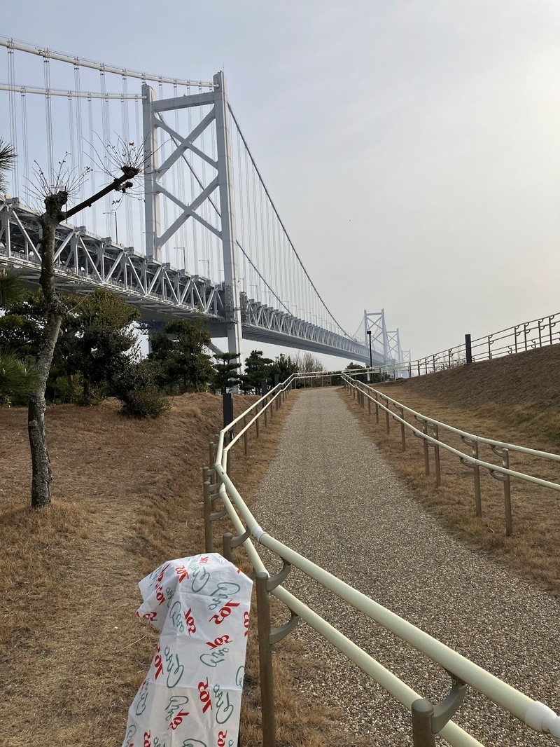 その道中、休憩がてら、当然寄るっしょと瀬戸大橋ですよ。やっぱり圧巻。何度見てもすごいな、これは。パチパチ写真を撮ってから、そうだ、お手洗いに行っておこうとコートのポッケに手を突っ込んで手ぬぐいに触れたところで思い出しました。
