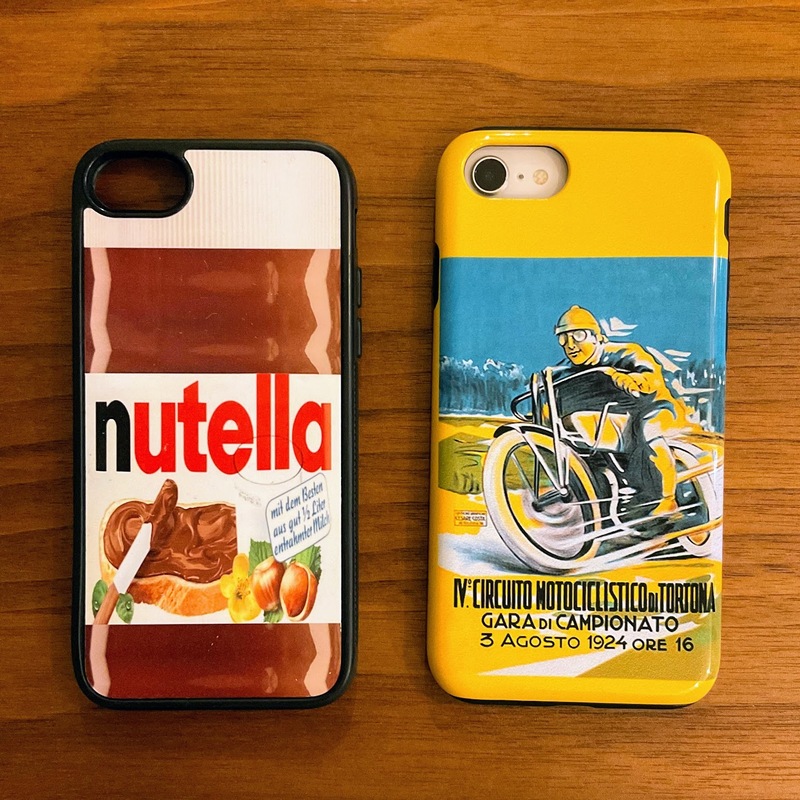スマホのケースを新調しました。4年ほど前に左側のヌテラ・デザインのものを購入して使い続けてきたんですが、その間に中身はグレードアップして無線充電ができるようになったのに、このケースに入れているとダメで、ちょくちょく外しては装着してってのを繰り返していたんです。