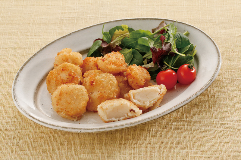北海道・枝幸町で獲れたホタテを使ったホタテフライ。