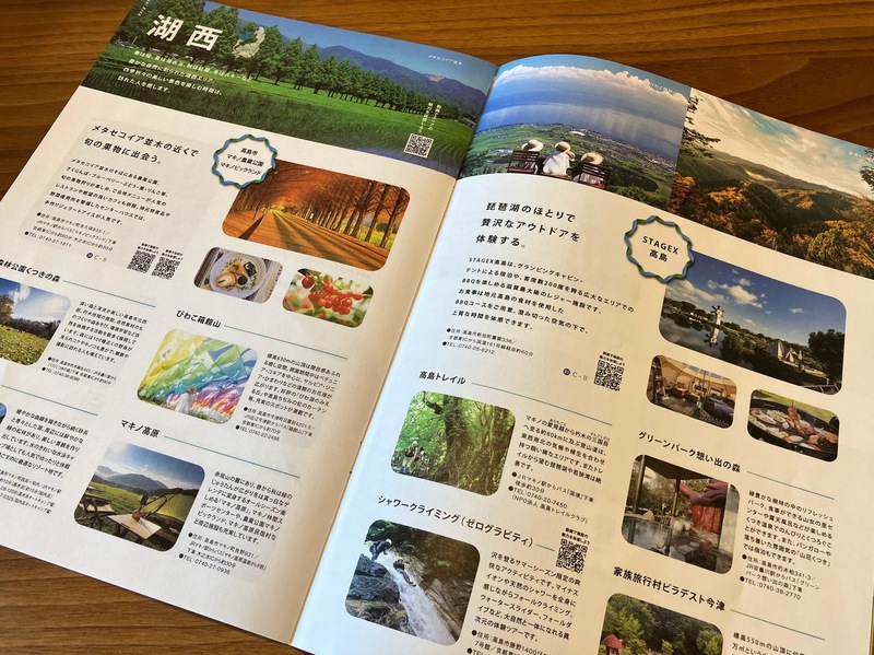 そして、改めてパンフレットをめくりつつ、大好きな湖西エリアのページを見ると、あった! STAGEX高島載ってたよ! なんて、我がことのように喜んでおりますが、今朝もCIAO 765、8時台にSTAGEX高島の魅力を紹介します。秋本番、行楽の参考にぜひお聴きください。