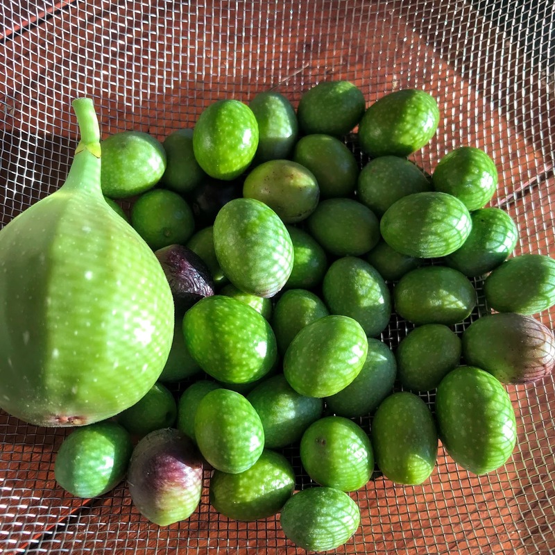 会社保養所の庭に植えてたった1年のオリーブが見事に結実してくれたんで、ホクホク収穫。1本だけだと実がつかない可能性もあるよなと思っていたんですが、花粉の「ご近所づきあい」がうまくいったのか、このように少量ながら摘むことができて、僕は嬉しいのです。ちなみに、大きいのは、おなじく庭にあるイチジクで、その日食べるようにひとつもいだもの。