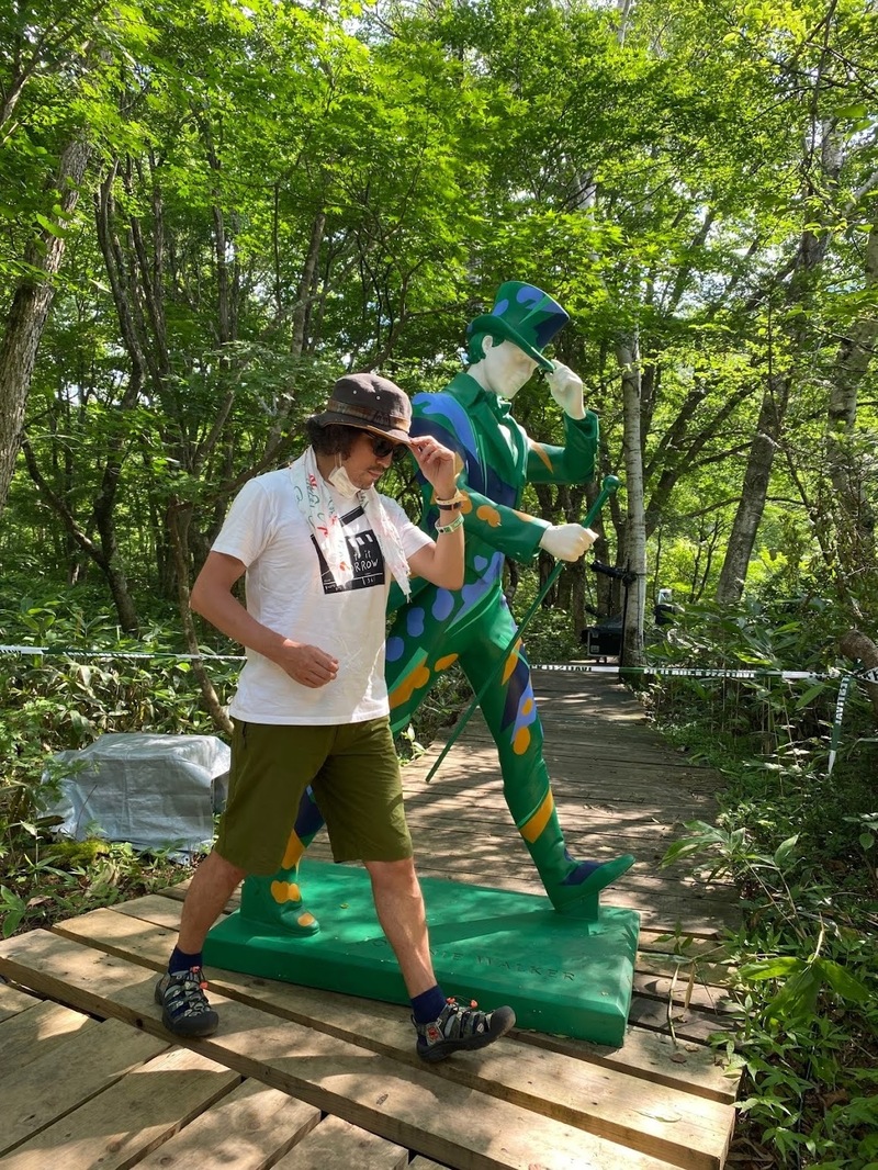 あ、ジョニー・ウォーカーの人だ。確かに、キャッチコピー通り、Keep walkingだもんね。確認した僕はすかさず荷物をおろして身軽になり、同行していたスタッフに「撮って撮って」とおねだりです。