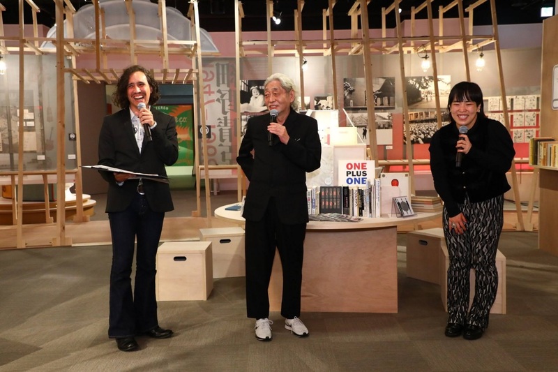 はい、これ、僕の人生のピークを捉えた写真です。メンターと仰ぐ細野晴臣さんの大々的な展覧会、細野観光の内覧会でMCをしている僕。隣でしっかり笑いを取る細野さん。そして、こちらも会話の合間にすかさずボケを挟むオフィシャル・アンバサダーのゆりやんレトリバーさん。