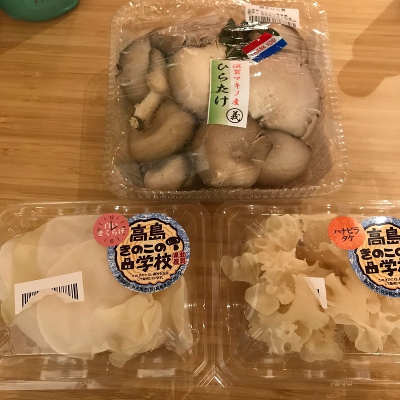 道の駅では、きのこを探す。これが僕のルールでして、週末には白いのを3種みつくろってきました。せっせと日々、バターで炒めておいしくいただいていますよ。ラベルを見ると、「高島きのこの学校」とあるでしょ? 僕は優等生です。エッヘン!