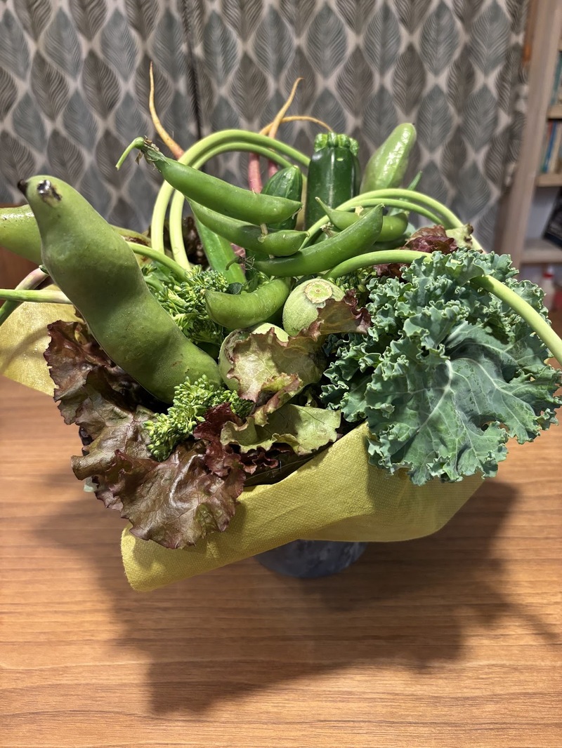 先日、滋賀県の野菜ソムリエさんから、こんな素敵なものをいただきました。まるで花束、なんですが、これがすべて食べられる、エディブルなものなんです。すべて滋賀県産の野菜やフルーツ。母なる琵琶湖と四方を取り囲む山々の恵みを活かし、農家の方々が有機農法、無農薬、減農薬で栽培された旬の産物を、こうして飾っておきたくなるようなプレゼンテーションで届けてくれるサービスがあるんですって。