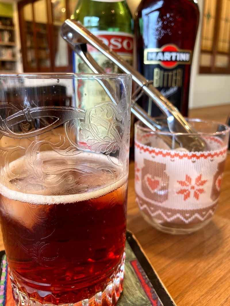 午前中に散歩なんかして少し気晴らしをしたら、午後はおやつの時間から軽く飲み始める始末。簡単なカクテルでもと、取り出してきたのは、僕の生まれたトリノの赤いリキュール2種類。