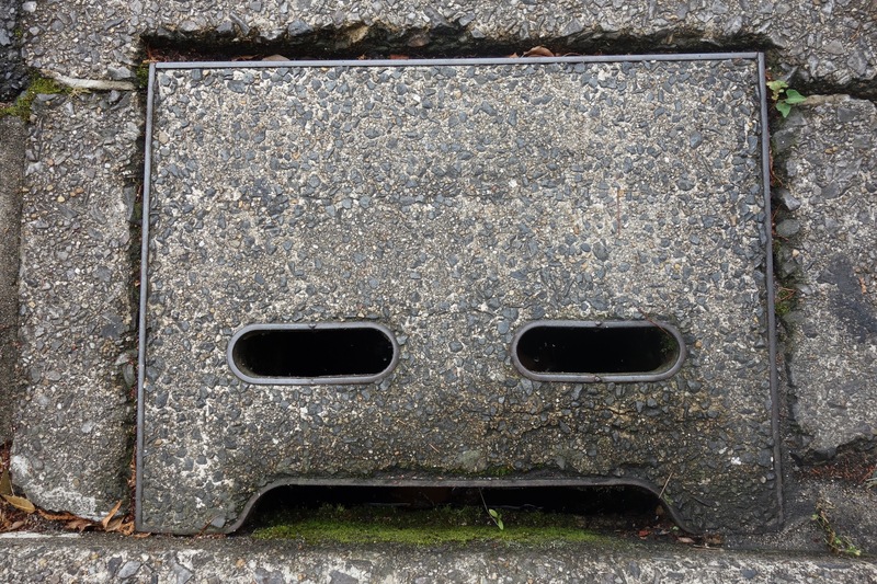 すると、マンホール以外にも、「人の顔に見えてくるシリーズ」ってのが、ありますよね。これなんて、何の変哲もない排水溝だけど、どう見たって、人ですよね、人。