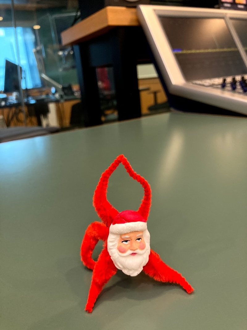 クリスマスイブの朝、マイクのあるブースに入ったら、いたんですよ。あろうことか、マイク・スタンドにこのひとでのような足を絡みつかせて。とっさに出てしまった言葉は...