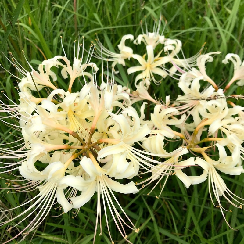 週末に散歩をしていると、水辺には彼岸花がわんさと群生していて、とてもきれいですね。やはり赤が妖しくて僕は好きですが、白いタイプもちょくちょく目にします。写真に撮っておこうと近寄ると、まぁ、白は白で妖しいですね。じっと見ていると吸い込まれそうです。