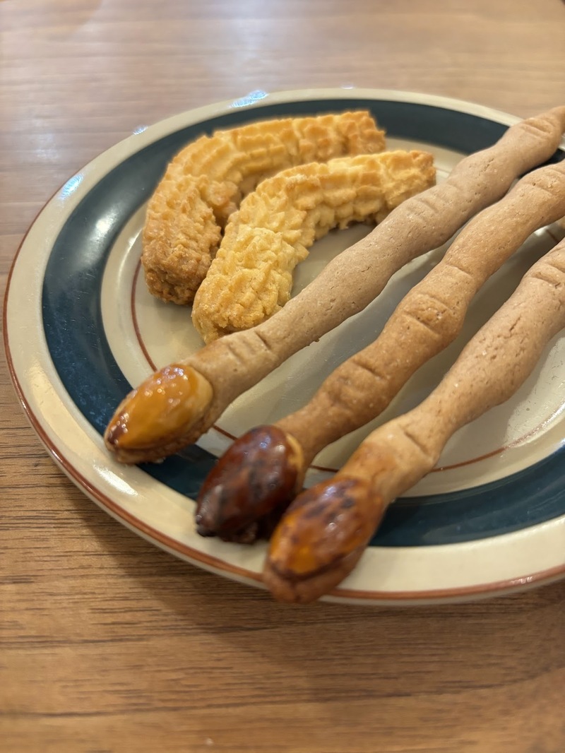嬉しい! で、受け取ってギョッとしましたよ。これ、イタリアで「魔女の指」(dita della stregaディータ・デッラ・ストレーガ)というお菓子なんですが、リ、リ、リアルすぎませんか? そそくさとリュックにしまって持ち帰り、家でカバンを開けると、なんと良い匂いがすることでしょう!