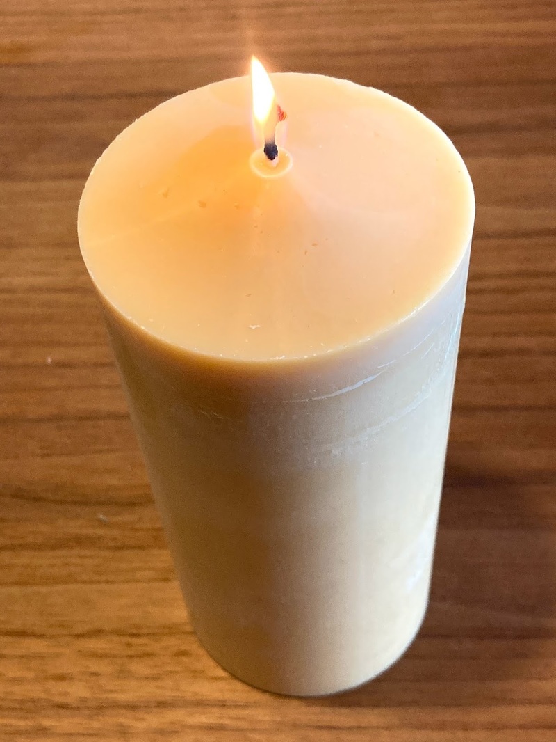 創業100年を越える、伝統あるお店で作られたこのキャンドルは、100%、天然由来。米ぬかでできているんだそうです。しかも、食卓で使えるようにと、煙少なめ、匂いもなし。結構大きいので、どんどん何度も使ってみようと、日曜日に早速灯してみました。