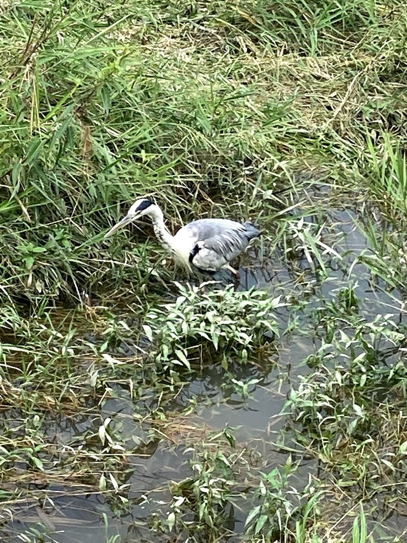 こりゃ、たまらんな。足を止めて、その流れを眺めていると、同じような人、違う、鳥を発見。サギか? きっとサギだ。すごい集中力だな。この姿勢のまま、ピクリとも動かない。