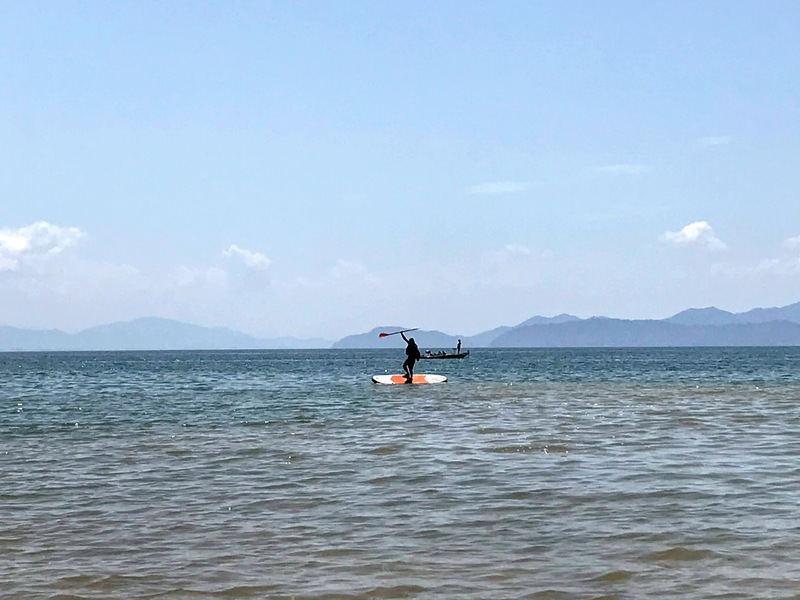 パドルを組み立てて、ライフジャケットを羽織ってカチッと止めて、スタンダップパドルボード、SUPを抱えて、いざ、出陣。
