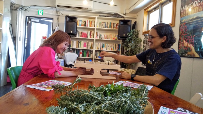 いや、いたって楽しそうでした。かわいい後輩のばんちゃん(FM802 DJの坂東さえか)を僕のやってるイベントスペースに招いての読書会。からの、僕が愛するテーブルゲームのクラスク大会と、調子に乗って2階建てでイベントを開催していました。