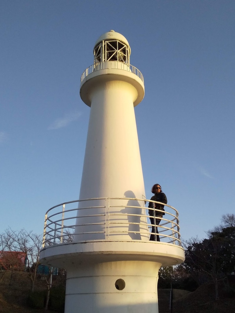 てことで、まちゃお、灯台守を気取るの巻。海の安全を守る末広がりな男。のつもりですが、これ、舞洲の公園にあった、ただの展望台なんですけどね。