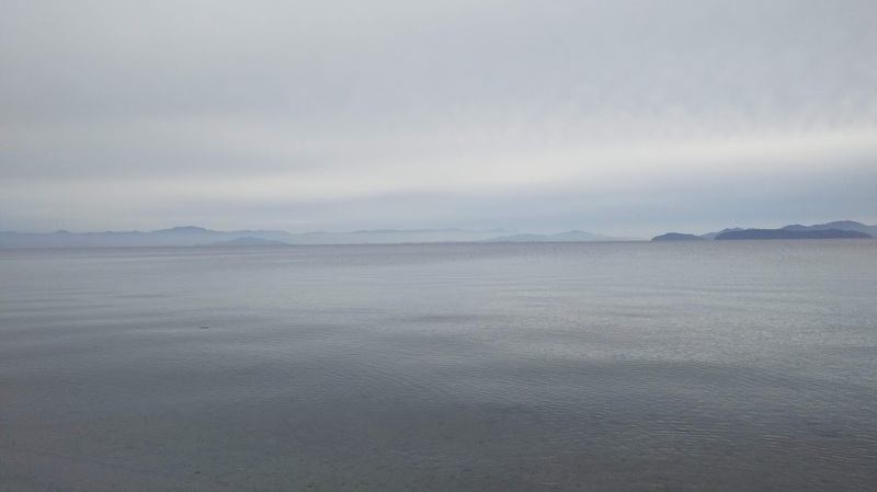 すっきりしない空模様ではあったんですが、だからこそ楽しめるのが、このまるで水墨画のような湖面と対岸の山並みの眺め。