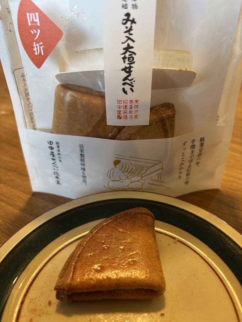 ご存知ですか? 名前の通り、岐阜県大垣市で生産されているこちらの煎餅は、そのおいしさと、「かたさ」で知られています。それが「1時の鬼の魔酔い」で大いに話題となっていたんです。うっかりすると歯がかける、それこそ歯が立たないお菓子だというんですね。確かに、表記も「かたい」「硬い」「固い」「堅い」のどれか迷うような、食品の域を超えたせんべいになっています。なにせ四つ折りですからね。ものすごいですよ。一度、お試しあれ。