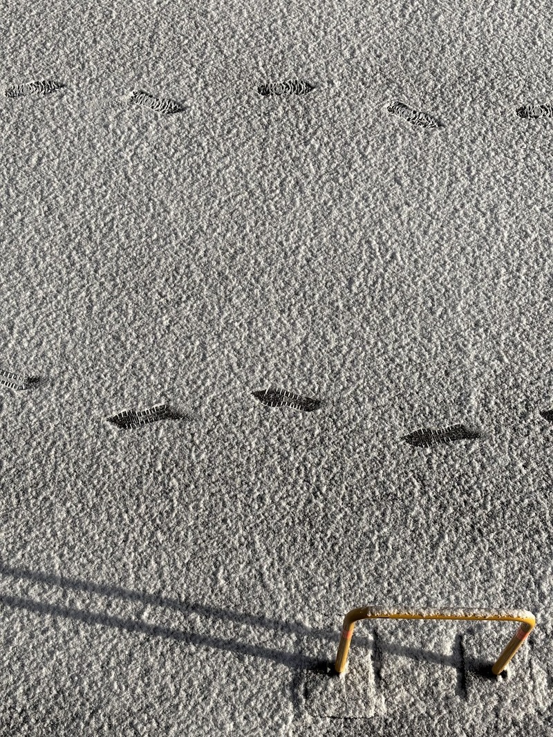 僕が眺めていた時が止まったような光景を、ここに置いておきます。影が気に入っています。この朝日が、この後1時間もすれば雪を溶かしてしまったんですけどね。