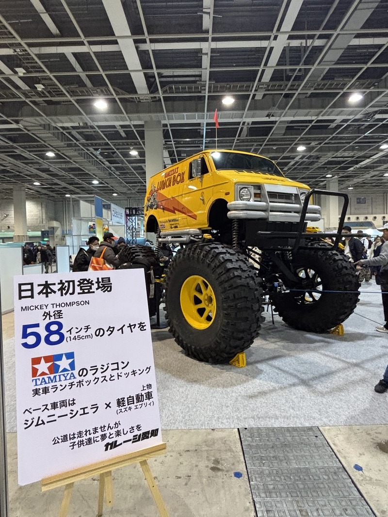 最近はアウトドアシーンをいかに楽しむかということに注力したカスタマイズが流行っているんだよなと、各メーカーや店舗が趣向を凝らした車にひとつひとつ感心。なんなら、TAMIYAのコーナにも出向いて、懐かしいミニ四駆に興じる人たちや新製品のラインナップを思わずチェックする時間もありました。