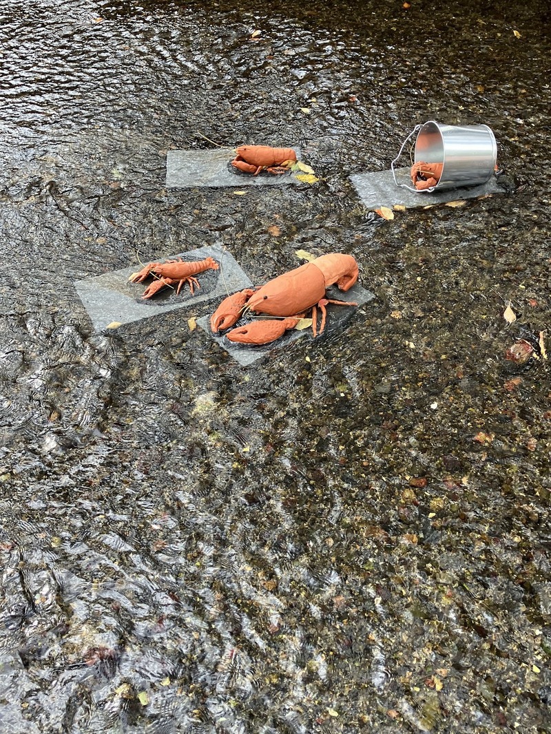 なんだこりゃ。バケツに… 伊勢海老、じゃなくて、これはザリガニか? 誰だ、こんなところにぶちまけて!