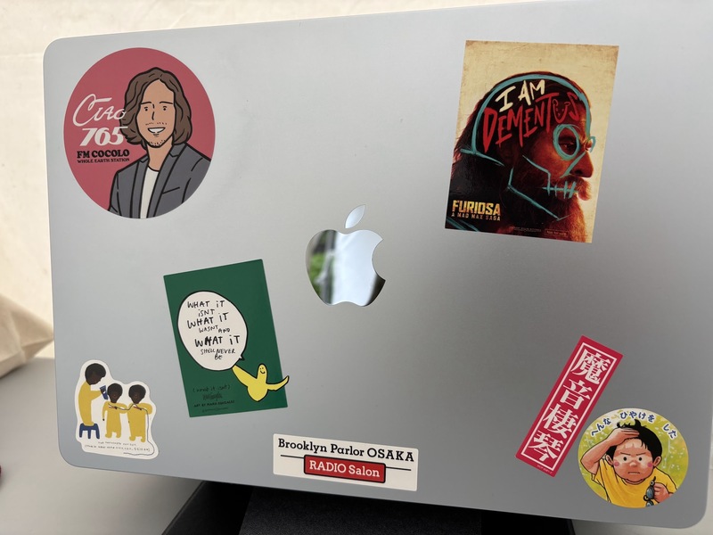 次なる問題は、新しいパソコンをどう彩るか。ステッカーは家にたくさんストックしてあります。さて、と。現状、こんな感じです。左上のピンクのやつなんかは、非売品かつプレゼントでも出していないレアめのやつ。Whole Earth Stationって書いてますしね。思い出にペタリ。あと、なぜか転がり込んできた大ピンチ図鑑のおもしろステッカーも添えてあります。ほんと、いつの間にか、PCが僕のステッカー掲示板になってしまっておりますわ。