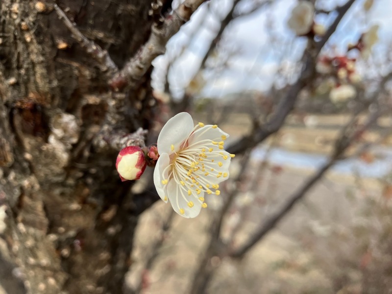 そう思ったら、近所に住んでいる母からメールがあり、庭の梅が今年も咲いたよ、と。添付されていた写真を見て、こら、咲いてるうちに実物を見に行かないとと思いながら、僕はシューズの靴紐を二重に結んでいました。