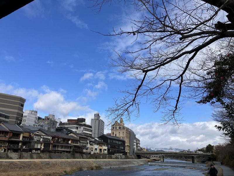 橋をいくつもいくつも、これでもかとくぐり抜けてデルタに戻りました。いつか、以前は途中で断念した、鴨川のスタート地点から桂川まで、すべての橋をくぐり抜ける行程を走ってみたいものだと思いを新たにしました。写真はドングリ橋から四条大橋。北山が雪化粧していて、京都の冬を満喫です。そら、寒かったけどね。