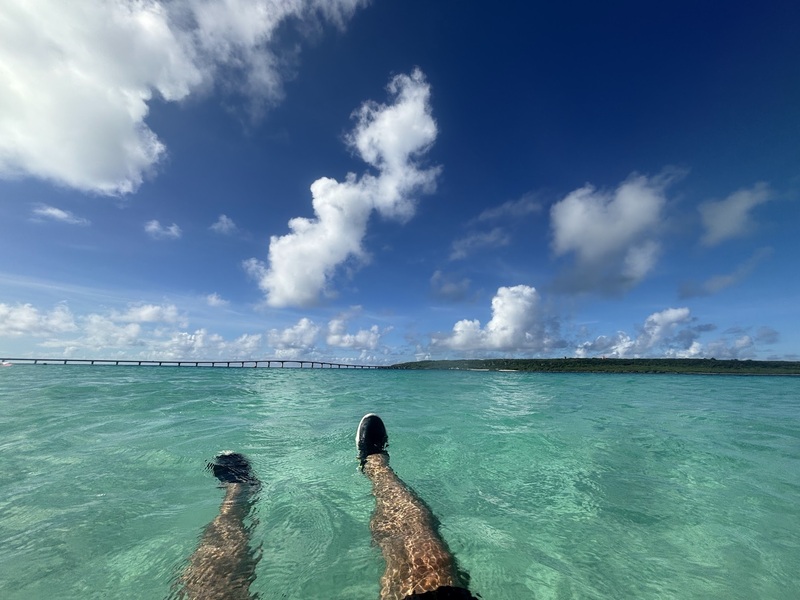 ところが、宮古島の場合は、イメージ通りだったんです。なんなら、イメージを軽く凌駕してきました。それは、水着に着替えてザブンと飛び込むと、さらに実感できたんですよ。透明度があまりに高く、覗き込めば、魚があちこちに。すごいすごい。手を伸ばせば、魚に触れられるんじゃないか? って、さすがに無理か、逃げられちゃうよな。
