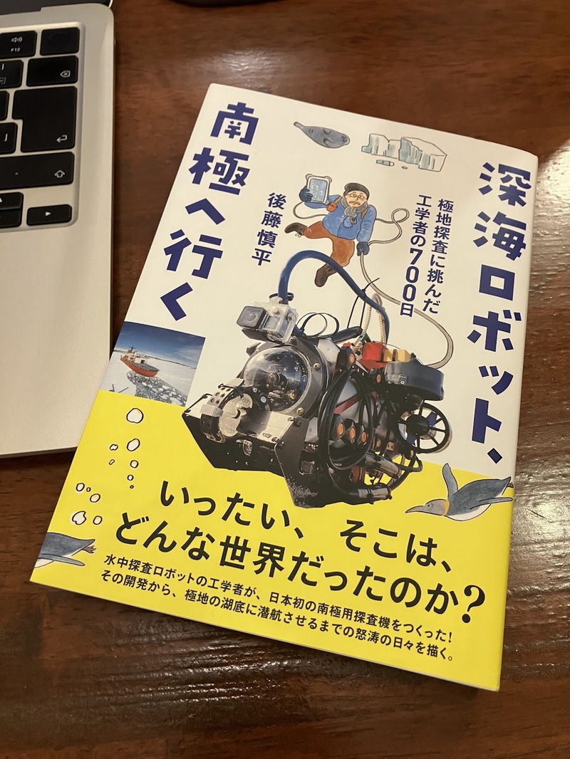 だからこそ、この本を読みながら、僕は著者の後藤慎平さんを尊敬しっぱなし。帯にもあるように後藤さんは工学博士。マリアナ海溝みたいな超弩級の深海へ水中探査ロボットを送り込み、リアルタイムで操縦する人です。読み始めたら、いきなりのハイライト。手に汗握りますが、実はまだ壮大な冒険が控えていました。それは、南極です。