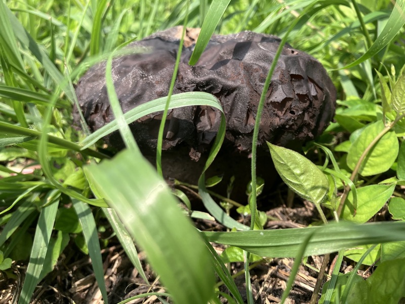 キノコかな? 近づいてみると、大きいし、紫がかったどす黒い球体がますます不気味です。とりあえず、触れずに草刈りを続けていると、今度は白いのも発見。さすがに気になったので、調べると、オニフスベというらしいですね。そんなに珍しいものではないらしいですが、僕にとっては珍奇そのもの。でっかいやつは、50センチくらいにまで成長するとか。そして、なんと、食べられるという情報も。はんぺんっぽい感じらしいですが、その味についての表現が興味深いです。「美味ではないが、不味でもない」。なんじゃそりゃ。誰か、食べたことある人います?