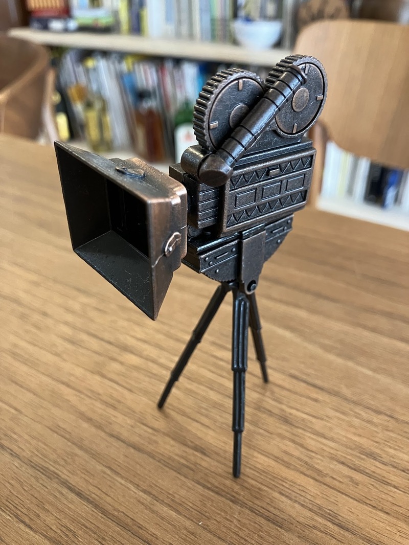 すると、こんなのに出会ってしまったのです。ブリキのオブジェで、映画のキャメラなんて置いてあったら、手に取ってしまうわけですよ。ホイホイです。ホイホイ。