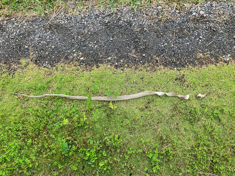 そして、日曜日は草刈りをしてたら、また長いのが出てきた! 即座に数歩後ずさりしつつ、それが抜け殻であることを知って脱力しました。