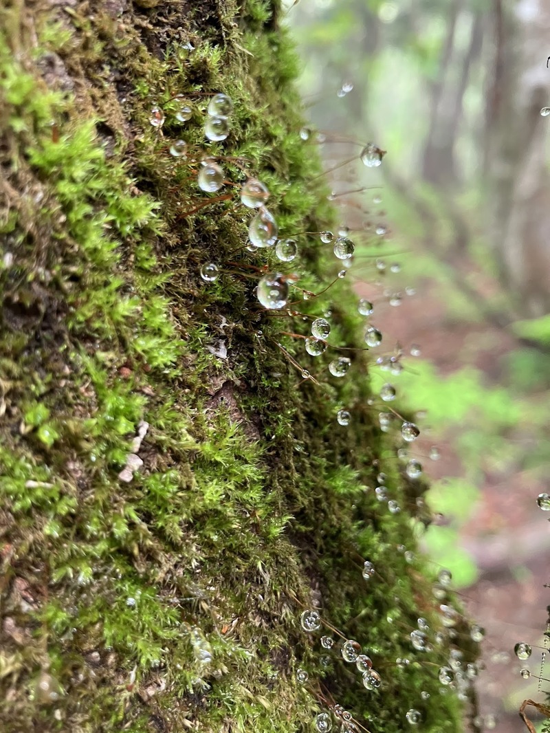 あ〜しんど! と、木に手をついたら、そこにこんな水玉たちがきらめいていたんです。素敵素敵。