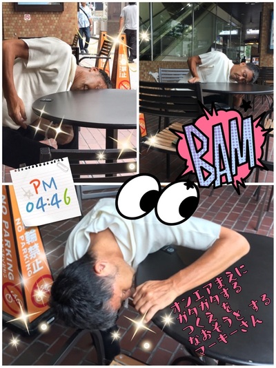 オンエア前に、ガタガタする机をなおそうとするマーキーさん・・・