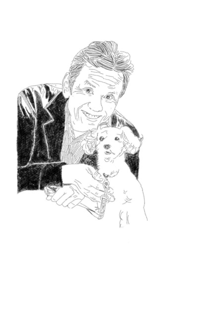 以前朝日新聞に愛犬ttと共に取材を受けて掲載された写真からの描き起こし。