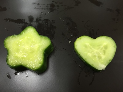 包丁で細工したのではなく、きゅうり自身の形が星形&ハート型
