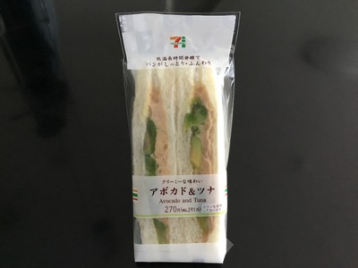 因みにセブンイレブン「アボカド&ツナ」、味は若干濃いめだけど最近の僕のお気に入りのサンドイッチっす。