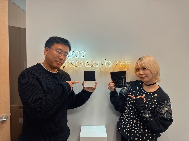 って事で、ディレクターの私物香水を持ってもらってパチリ!