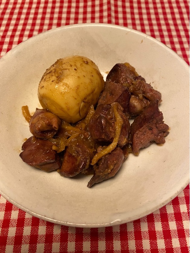 ゆで卵2つを加え、4、5分煮る。この後はお好みの加減に煮詰めて出来上がりです。