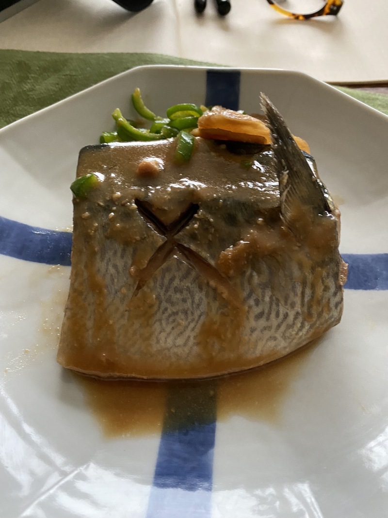 6.残った煮汁でピーマンをサッと煮て鯖に添える。
