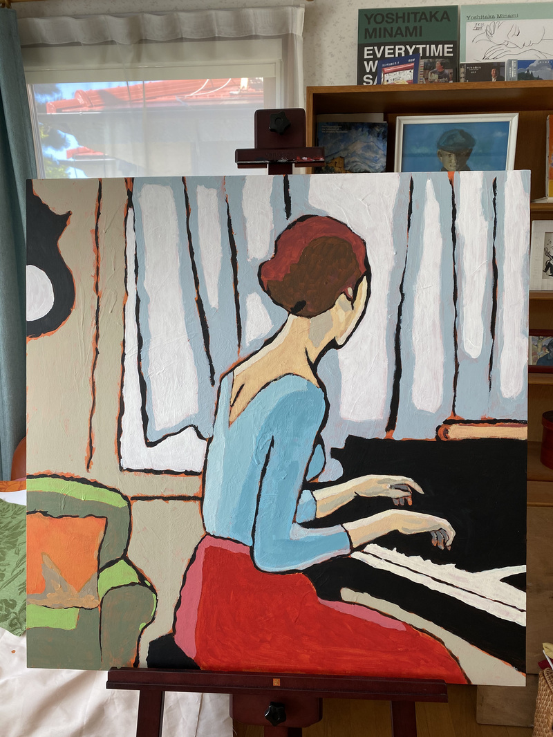題して「ピアノを弾く人、習作」