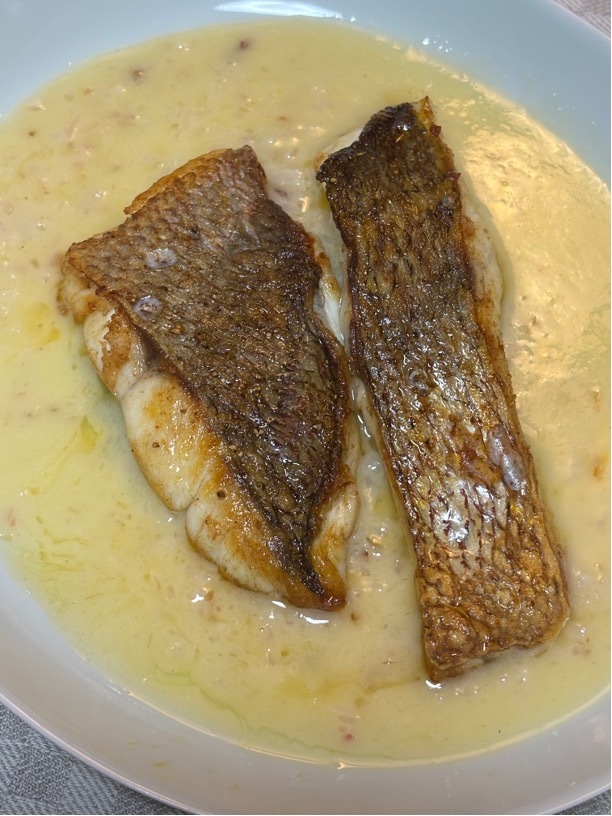 充分に皮が焼けたところで、裏返し白身のほうも少し焼き、