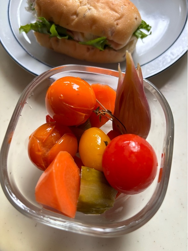 そこに野菜を入れて冷めたらジップロックに入れて冷蔵庫で1日休ませたら