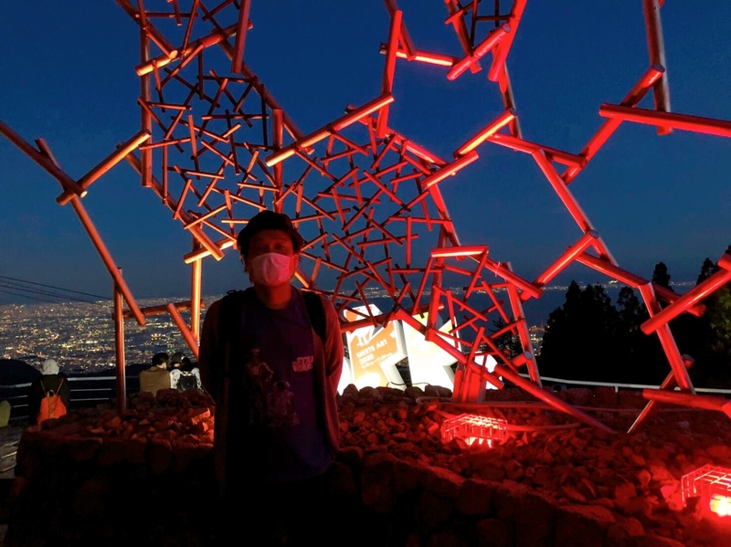 ↑夜の六甲ガーデンテラス・自然体感展望台 六甲枝垂れも
