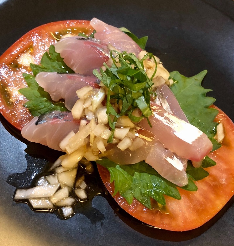 今回ご紹介いただいたメニューは「トマトとアジのカルパッチョ」