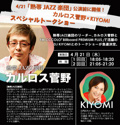 開演前にリーダーのカルロス菅野さんとKIYOMIがトークショーを行います。