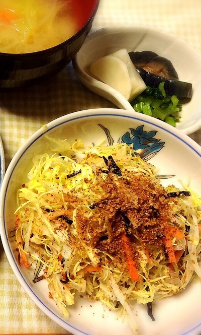 去年の春からハマっているというキャベツを使ったサラダ。