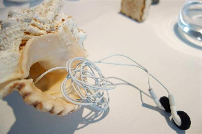 音楽や料理は、一瞬にして時空間を超える力がある。記憶の大事な部分に刺激を与えることができるのだと思っている。その双方の力を巧みに使った料理を今日するのがロンドンの「ファットダック」というレストラン。シェフのへストン・ブルメンタールは五感を使うことが人間の特性。それを考え抜いた料理人。料理が運ばれる前にスプレーで霧を放ちます。「これは森の香りです。それを感じながら次の料理を召し上がってください」とサービスマンが言葉を添え、キノコなどの料理がサーブされるのです。こちらとして、思わず森の風景を想像してしまう。そしてこのレストランの名前を世間に知らしめた「サウンド オブ シー」。箱型をしたプレートには泡と魚介類がまるで波打ちぎわに打ち上げられたように並んでいる。その隣には大きな貝殻があり、その中に小さな再生装置、そこからイヤフォン。それを耳につけると、なんと波が打ち寄せる音とカモメの鳴き声が聞こえてくるのです。まさに五感を刺激することで、料理の味わいに含みをもたせたのです。