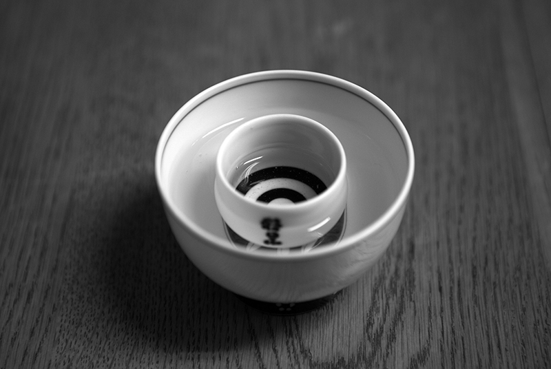 熱いお湯をいれた茶碗に酒をついだお猪口をそろりと入れるのです。器の外から熱が伝わり、温度はじわじわとあがって、その変化の過程をちびりちびりと愉しみながら、酒と自分のベストの温度を探るのです。誰がなんといおうと自分がおいしければそれがイチバン。新潟の師がいいました。「日本酒をお湯で割る人もいるんだヨ。しっかりした日本酒なら割っても大丈夫なんだ」。日本酒、恐るべしです。